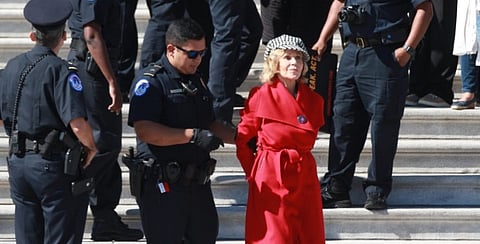 Oscar-winning actress Jane Fonda, 81, was arrested during a climate change protest in Washington, D.C. The actress and activist was arrested from the US Capitol on Friday, reports variety.com. “Today, the United States Capitol Police arrested 16 individuals for unlawfully demonstrating on the East Front of the U.S. Capitol,” said Capitol Police communications director Eva Malecki. She added that all were charged with crowding, obstructing or incommoding. ‘Several videos emerged on social media of the “Grace and Frankie” star being taken into custody in handcuffs on Friday afternoon.