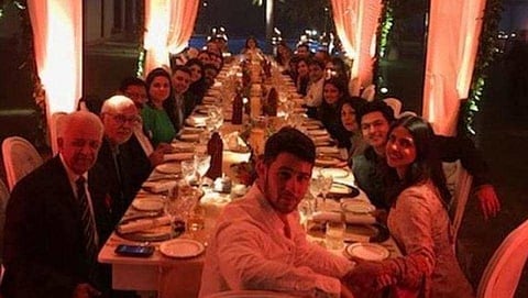 Ahead of their wedding, actress Priyanka Chopra and American singer Nick Jonas celebrated Thanksgiving with their families here. Priyanka on Thursday night took to Instagram, where she shared a photograph of herself along with Nick and their family on the dinner table. The couple could be seen holding hands, while posing for the camera. She captioned it: “Happy Thanksgiving. Family forever.”