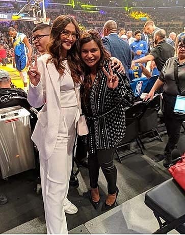 Bollywood actress Sonam Kapoor Ahuja has met Hollywood actress Mindy Kaling and called her “impossibly sweet, funny and smart”. On Tuesday, Sonam and her husband Anand Ahuja attended their first Lakers game in Los Angeles when they bumped into the American actress.