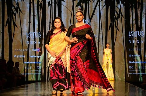 “It was a fabulous experience to walk the ramp for Sanjukta Dutta and support the many rural women weavers of Assam who are extremely skilled but cannot find a proper platform to showcase their craftsmanship. Sanjukta Dutta’s beautiful ensemble promotes the rich Indian culture and heritage while benefiting the valuable Indian textile industry. I totally relate to the representation of a woman that the collection “Suwonee” speaks for which is beauty, independence, and empowerment. I wish Sanjukta and her brilliant team of artisans a great future.” shared Tabu.