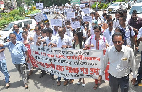 GUWAHATI, Sept 11: Despite extension of solidarity and participation from various organizations of the State and leaders including KMSS leader Akhil Gogoi, the indefinite strike launched by the ‘All Assam 108 Mrityunjoy Employees Association’ is yet to receive any responds from the State government. Fanning the flame, even the GVK (EMRI) authority is also turning down their grievances. As such, the strike has entered 8th day on Wednesday without a result.