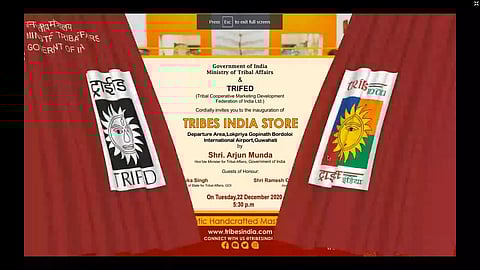 New Delhi: Union Minister for Tribal Affairs Arjun Munda on Wednesday e-launched the new Tribes India Outlet at the Departure Lounge of Lokpriya Gopinath Bordolai International Airport, Guwahati. Along with Minister Arjun Munda, Renuka Singh, Minister of State for Tribal Affairs; Ramesh Chand Meena, Chairman, TRIFED; Pratibha Brahma, Vice Chairman, TRIFED; Pravir Krishna, Managing Director, TRIFED and Director, Airport Authority of India, Guwahati were present in the e-launch.