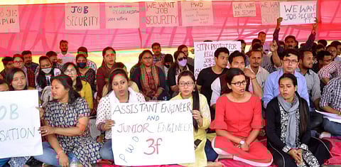 GUWAHATI: All Assam PWD Assistant Engineers and Junior Engineers' Association staged a protest at Dispur Last Gate on Wednesday.