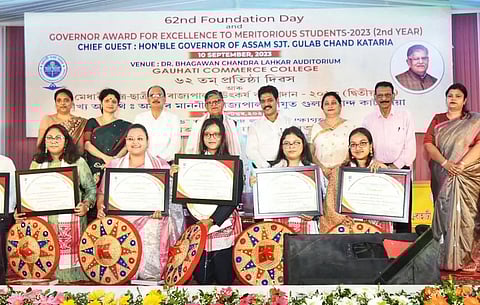 GUWAHATI: Assam Governor Gulab Chand Kataria presented the Assam Governor's Award for Excellence to meritorious students for the year 2023 at a programme held at Gauhati Commerce College on Sunday. It may be noted that the awards were conferred on Krishna Maheshwari for securing a First Class First Position in B.Com. 2023, Ishika Mahanta for a First Class First Position in BBA 2022, Krishnakshi Chakravarty for a First Class Fifth Position in M.Com. 2022, Aditya Sahu for a First rank in MBA 2022, and Noureen Rahman for a First rank in MBA 2023.