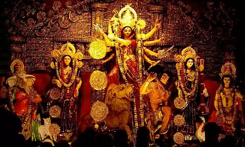 GUWAHATI: The Durga Puja in Guwahati goes thematic – depicting diverse themes. Durga Puja committees, it seems, are taking full advantage of the mask-free Durga Puja this year. Big budgets are remarkable in this festive season. The Vishnupur Bimala Nagar Sarbojanin Puja Committee is celebrating the 56th Durga Puja this year. This puja committee, with a budget of Rs 22 lakh, will depict the Angkor Wat Temple of Cambodia. The idol of the Goddess in the puja committee will be 17-foot tall. Shantipur Durga Puja Committee has Rs 20-lakh budget and is going to depict heritage with jute leaves. They brought an artisan from Jalpaiguri who lays more importance on lightening.