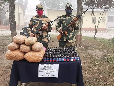 In another operation, the BSF troops of BOP Daribas of 38Bn BSF seized 300 bottles of Phensedyl from Daribas village. The bottles were handed over to Dinhata PS, stated a release.