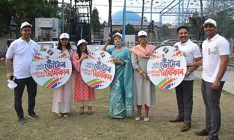 Towards this end, a series of steps are taken under SVEEP (Systematic Voters' Education and Electoral Participation). He flagged off 3 Tableaus this afternoon at Latasil playground, Guwahati, with specially designed visual displays and live performances which will traverse all the 50 Election Districts of Assam, appealing to the voters to exercise their right to vote.