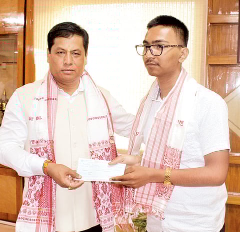 Sonowal congratulated Raktim and felicitated him with a gamocha. Sonowal took note of Raktim’s grit and resolve and hailed his achievement with high degree of admiration. He also wished Raktim all luck for his future studies. Chief Minister handed out a cheque worth Rs. 1,00000 to Raktim and congratulated his parents Bharat Bhuyan and Baby Bhuyan and his teachers for their efforts in enabling Raktim to top the rank holders’ list and made his alma mater proud of his achievement.