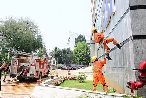GUWAHATI: In view of the National Fire Service Week from April 14–20, a mock fire drill was conducted on the premises of State Bank of India’s local head office at Dispur to test and bolster employees’ emergency preparedness. The drill was conducted under the guidance of the State Fire and Emergency Services, the National Disaster Response Force (NDRF) Battalion, Assam, and SBI’s Premises and Estate Department.