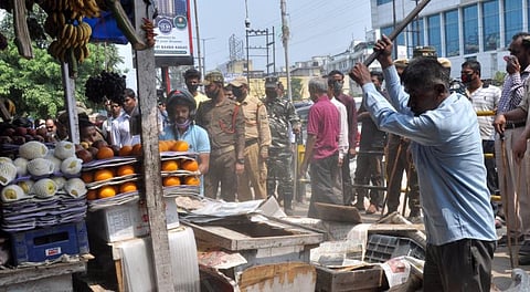 GUWAHATI: The Guwahati Municipal Corporation (GMC) along with the assistance of the Bhangagarh Police carried out an eviction drive for the sixth consecutive day on Friday.