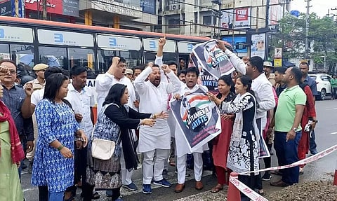 The protestors were supposed to go to the ED office in Chandmari but police stopped them from doing so.