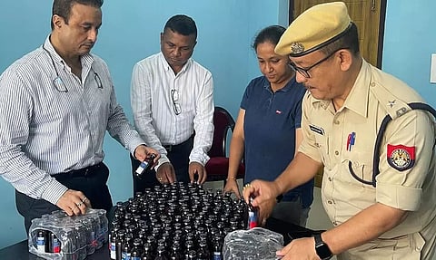 GUWAHATI: In one of the biggest seizures of banned cough syrup by Guwahati Police, a team led by Joint CP Partha Mahanta, seized a huge consignment of Phensedyl, an addictive cough syrup, from a commercial vehicle.