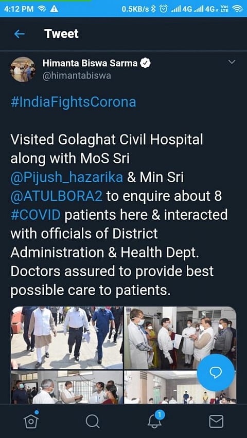 Sarma had said, "The Minister added, “Our prime concern was on all those working or studying in metropolitan cities and returned to Assam. However, most of them almost passed the period for showing corona symptoms. We’ve received the blow from some others. I appeal to all those who might have been in contact with people returning from Nizamuddin to voluntarily go for the corona test.”