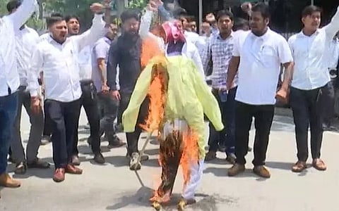 GUWAHATI: Following the Kharguli tragedy, in which a water supply pipeline ruptured, killing one person while damaging neighbouring structures and washing away multiple vehicles, the All Assam Students' Union (AASU) organised a protest by burning the effigy of state cabinet member Ashok Singhal.
