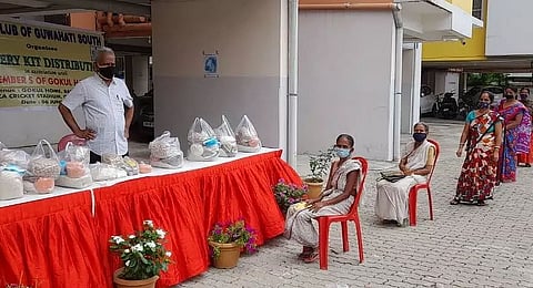 GUWAHATI: Barsapara located Gokul Homes in association with Lions Club of Guwahati south on Sunday distributed around 150 dry ration packets in the locality to the house helpers. The distribution was done adhering to all COVID-19 protocols.