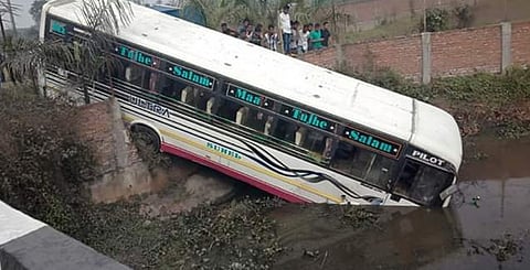 The bus bearing registration number AS 01HC 1458 heading from Rangia to Guwahati met with the accident at National Highway 31 near Moranjona area. The bus later fell into a drain.
