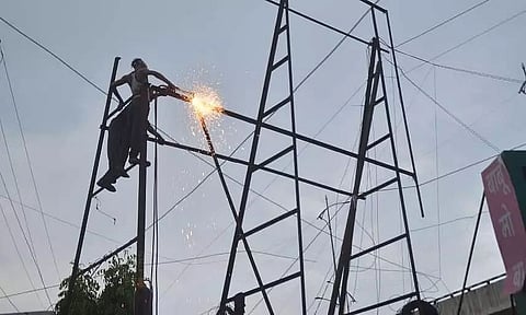Taking to his Twitter handle the minister wrote, "Govt under Dr. @himantabiswa in service to the people of Assam 24X7. Personally supervised a daring midnight rescue operation in cooperation with @aegclofficial, @GuwahatiPol, & SDRF of a person who climbed atop a 2.2 lakh volts transmission tower at Deeporbeel"