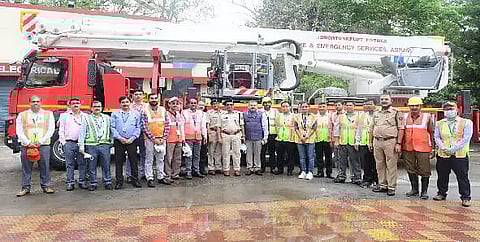 According to a press release, the drill was conducted under the guidance of State Fire and Emergency Services (FES) and SBI's Premises and Estate Department. A demonstration on rescue and fire control was exhibited in the presence of all the staff members, who were called on the ground floor after a false alarm was set in the building. Due procedure was followed while evacuating the staff members, guided by the designated floor marshals of each floor. As an emergency fire situation was created, the State Fire and Emergency Services from Dispur station responded immediately by sending hydraulic platform ladder and fire tender vehicles. A rescue operation was also demonstrated using the hydraulic platform ladder where two staff members were evacuated safely from the 8th floor of the building after putting out the fire.