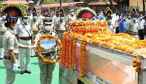 GUWAHATI: The mortal remains of veteran politician and former Chief Minister Dr Bhumidhar Barman were taken to various places on Monday. The body was first taken to the Assam Assembly where Dr Barman spent vast time of his political career as an MLA and minister. The legislators from the ruling and opposition benches, officials and staffs of the Assembly secretariat paid floral tributes to the departed soul. Cabinet minister Chandra Mohan Patowary, Chief Secretary Jishnu Barua and DGP Bhaskar Jyoti Mahanta paid tributes to Dr Barman when the body was taken to the Janata Bhawan or State Secretariat in Dispur. The body was later taken to the Rajiv Bhawan, the Assam Congress headquarters where large number of people paid tributes. His body reached his birth place at Belsor in Nalbari district on Monday evening. Dr Barman will be cremated with full State honour at Belsor on Tuesday.