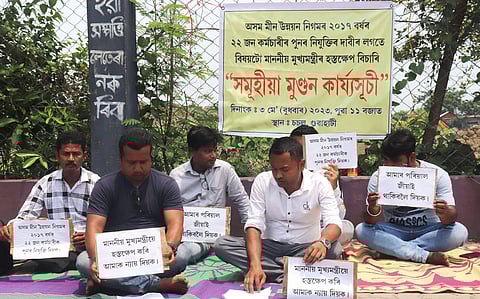 GUWAHATI: Several former employees of the Assam Fisheries Development Corporation (AFDC) staged a protest on Wednesday at Chachal against their removal from their jobs after five years of service to the corporation. They also undertook a torturing programme as a mark of protest, and a memorandum regarding the same was submitted to the Chief Minister of Assam, demanding his interference in the matter.