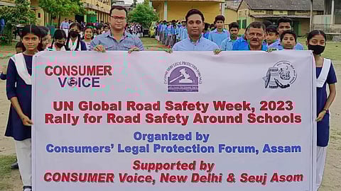 More than 400 students signed a memorandum and demanded to ensure the safety of children on roads near schools in Guwahati. Consumers’ Legal Protection Forum, Assam (CLPF), in association with Consumer Voice, New Delhi, & Seuj Asom took the initiative and submitted the memorandum to Transport Minister Suklyabaidya. A rally participated by more than 400 students from TC Government Girls’ HS and MP School, and Satgaon High School of Guwahati was also taken out as a part of observation the UN Global Road Safety Week. The students displayed placards with slogans.