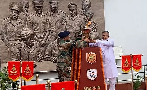 GUWAHATI: The Swarnim Vijay Mashaal symbolizing India's triumph over Pakistan in the 1971 war was brought to the War Memorial at Digholi Pukhuri, Guwahati on Monday in a formal ceremony organized by 51 Sub Area.