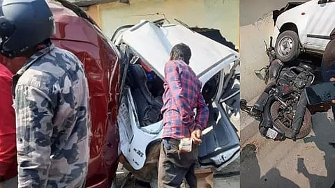 The tragedy occurred after a speeding Ford Endeavour collided with an Alto and a standing bike, according to eyewitnesses. One of the injured was sitting on a parked bike when one of the vehicles involved in the collision mowed him down. Two other people were said to be in the moving Alto.