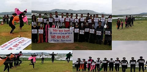 GUAWAHATI, May 9: To bring about awareness among people on the deploring condition of the water body, in an initiative undertaken by NIRVAK YATRA, a group of young artistes performed a mime act in the heart of Deepor Beel, recently. The act was titled, ‘Sorai Jaak Noha Hol,’ which means “the flock of birds stopped coming”.
