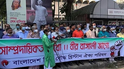 The protesters demanded an end to attacks on minority communities, which they claimed were done through spreading rumours of 'hurting religious sentiment'.