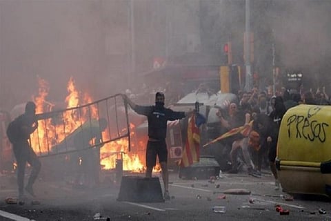 Barcelona: Clashes erupted between riot police and over half a million citizens who took to the streets of Barcelona to protest against the hefty prison sentences recently handed out by the Spanish Supreme Court to several leaders of the Catalan independence movement.
