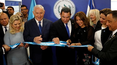 Jerusalem, May 16: Guatemala inaugurated its embassy in Jerusalem on Wednesday, two days after the US opened its embassy in the disputed city. Guatemalan President Jimmy Morales and Israeli Prime Minister Benjamin Netanyahu cut a blue-and-white ribbon as the official opening of the embassy, Xinhua news agency reported. Morales said Israel and Guatemala have a “deep friendship”, hoping that other countries will follow suit. Netanyahu hailed the opening as “the beginning of something extraordinary” in the relationship between the two countries. The opening of the US embassy on Monday triggered deadly clashes between Palestinian protesters and Israeli security forces in Gaza and the West Bank that left more than 60 civilians dead. (IANS)