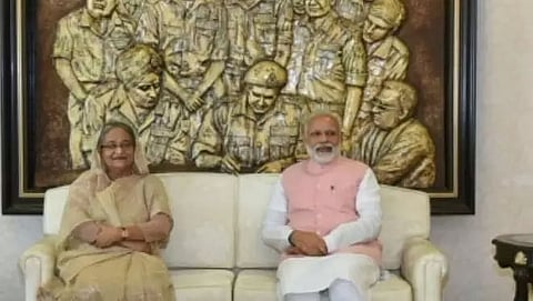 DHAKA: Bangladesh Prime Minister Sheikh Hasina and her Indian counterpart Narendra Modi visited the 'Bangabandhu-Bapu' digital exhibition, which commemorates the lives of Sheikh Mujibur Rahman and Mahatma Gandhi. The exhibition, which showcases the bond of blood and shared sacrifices that unite Bangladesh and India, is being organised at the Bangabandhu International Conference Centre (BICC) here.