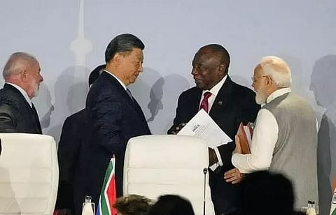 JOHANNESBURG: Prime Minister Narendra Modi and Chinese President Xi Jinping were seen exchanging a handshake and in brief conversation with each other on Thursday at the BRICS Summit in the South African capital city of Johannesburg. Before issuing a joint statement of 15th BRICS Summit by the leaders of the group-ing, PM Modi and the Chinese Premier were seen walking and chatting before they took their designated seats. Also, post the briefing, the two leaders were seen exchanging a handshake on the stage.
