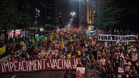 BRASILIA: Thousands of Brazilians took to the streets across major cities in the country to protest against the COVID policies of President Jair Bolsonaro and his government. In Rio de Janeiro, demonstrators on Saturday marched from the statue of Zumbi de Palmares, a hero of the Afro-Brazilian human rights movement, reports dpa news agency.