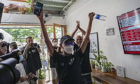 "I can say it out loud, that I am a cannabis smoker. I don't need to hide like in the past when it was branded as a illegal drug," said 24-year-old Rittipong Bachkul, the day's first customer. Marijuana is also known as cannabis or ganja in Thailand. (Agencies)