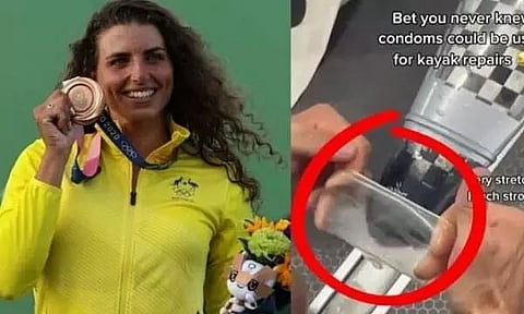 Well, that sounds a little weird to some, but Jessica Fox actually used a condom to repair the damaged kayak that eventually won her gold at Tokyo Olympics. Earlier this week, just before winning her maiden Olympic gold medal in the women's C1 canoe slalom and a bronze medal in the category of canoe slalom K1 final, an athlete shared a video of her on TikTok while she was busy making makeshift repairs on her damaged kayak with the help of a condom. The video is now doing rounds on various social media including Instagram and Twitter and has become viral. Jessica captioned her video "Bet you never knew condoms could be used for kayak repairs."