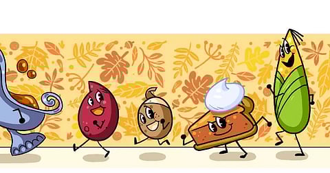 Given the coronavirus epidemic that delayed Thanksgiving celebrations last year, Google is marking the holiday with merely an illustrated doodle that symbolises togetherness this year. In Thursday's Google Doodle, the traditional components of a traditional Thanksgiving feast joyfully join in a merry march, reminiscent of the 1950s movie theatre intermission advertisement Let's All Go to the Lobby.