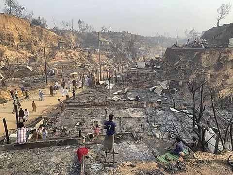 DHAKA: The UN has donated $14 million to help rebuild Rohingya camps in Bangladesh's Cox's Bazar district after they were destroyed in a massive blaze earlier this week, leaving thousands of the refugees homeless and killing at least 15 of them.