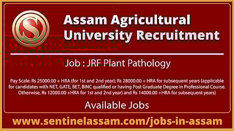 Application Procedure: Walk-in-interview will be held on 11th March 2020 at 9.30 AM in the Office Chamber of the Hon'ble Vice-Chancellor, Assam Agricultural University, Jorhat. Candidates may appear for the interview with bio-data, reprints/publication/thesis etc and passport size photographs. Original and attested copies of all testimonials etc must be presented at the time of interview. The applicants may submit their resume in advance to ashok_yya@yahoo.co.in