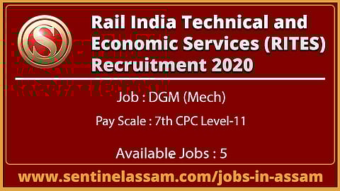 Rail India Technical and Economic Services (RITES) invites applications from eligible candidates to fill in 5 vacant positions. The PSU organization invites applications for DGM (Mech) Posts from eligible candidates having required qualifications. These vacancies are in RITES Limited, Bongaigaon, Assam, Rourkela, Orissa, Nabinagar, Bihar, Farakka, West Bengal, Marwar, Rajasthan on Deputation Basis.