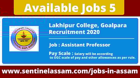 Lakhipur College, Goalpara has released an employment notification for the recruitment to 5 Assistant Professor posts.