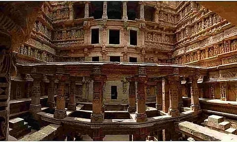 Rani ki Vav is an intricately constructed stepwell situated in the town of Patan in Gujarat, which lays about 130 kilometres northwest of Ahmadabad. Patan is known for its unique weaving craft of 'Patola' silk sarees, which are produced in a vast process by the Ikat technique. Threads are tie-dyed to create the patterns even before the weaving process begins.