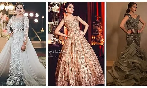 Cocktail gowns are always worn with high heels and singular pieces of statement jewellery. Going forward there will be more emphasis on conversational neck pieces and bracelets. Fusion designs (amalgamating western and Indian influences), cinched waistlines and fabrics with sheen and glitter are trending in cocktail gowns. Also in the seasons to come, apart from the international designer labels, more and more people will make a beeline for gowns retailed at local designer boutiques.