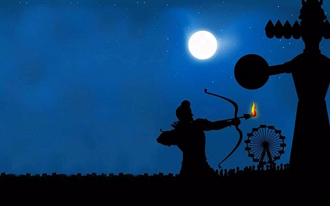 In different areas of India, Vijayadashami is commemorated and observed for distinct causes. Vijayadashami represents the culmination of Durga Puja in India's Northeastern, some Northern, and Eastern areas, commemorating the victory of Goddess Durga over Rakshas Mahishasura (the monster in the form of a buffalo) for restoration dharma (righteousness). The event is known as Dussehra in the Central, Western, and Northern states. In those parts of India, it commemorates deity Rama's triumph over the evil king of Lanka, Ravana, and symbolises the conclusion of Ramlila in certain areas. Arjuna alone devastated over a million troops and vanquished all the Kuru warriors, inclusive of the great Bhishma; the father-son duo, Drona and Ashwatthama; one of the greatest archers, Karna; along with Kripa, on the very same day, demonstrating the triumph of good over evil.