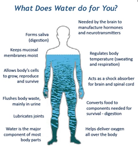 Water is essential to life, performing a variety of critical functions that sustain all living organisms. For some organisms, water makes up as much as 90% of their body weight, while in humans, it constitutes around 60% of an adult's body. Key organs and tissues like the brain and heart are 73% water, the lungs 83%, muscles and kidneys 79%, skin 64%, and even bones are 31% water. To survive, humans must consume a specific amount of water daily, typically about 3 litres for men and 2.2 litres for women, though this can vary by age, gender, and environment. Not all water needs to come from liquids, as many foods also provide hydration.
