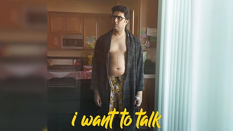 Abhishek Bachchan shared the intriguing first look of his upcoming film ‘I Want To Talk’, directed by Shoojit Sircar. The ‘Guru’ actor dropped the poster from the movie in a post on his Instagram account on Friday. In the poster, the actor can be seen in a bathrobe with a grumpy look on his face. The picture also shows some mysterious marks on his stomach and an injured hand, leaving fans with a sense of curiosity about his character.