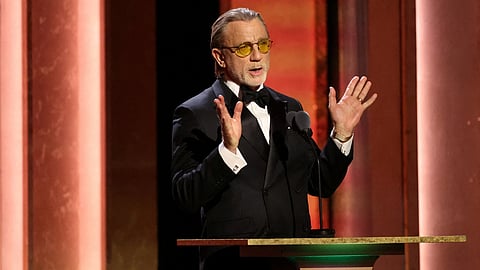 At the Governors Awards, Daniel said, "Let's just get something out of the way," and then went on to introduce James Bond producers Barbara Broccoli and Michael G Wilson, who were honoured with the Irving G Thalberg Memorial Award.