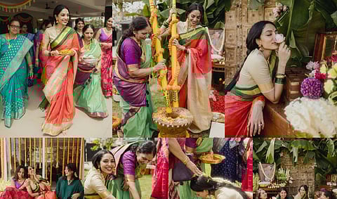 Actress Sobhita Dhulipala and Telugu star Naga Chaitanya, who are set to tie the nuptial knot soon, have flagged off their wedding festivities. On Monday, the ‘Made In Heaven’ actress took to her Instagram, and dropped pictures from the Pasupu Danchadam ceremony which marks the starting of wedding festivities in Telugu culture. She wrote in the caption, “Godhuma Raayi Pasupu danchatam And so it begins”.