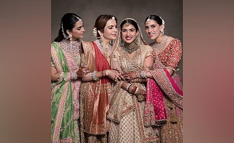 The image, capturing the Ambani ladies at Radhika’s wedding with Anant Ambani, the youngest of the three children of Mukesh and Nita Ambani, showcases their impeccable style in custom made couture.