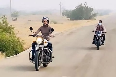 Bollywood actress Kriti Sanon has shared a video on social media, where she is seen riding a motorbike. The song Hairat from the 2010 film Anjaana Anjaani plays in the background.
